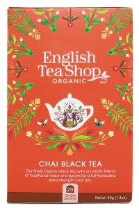 Składniki: ekologiczna herbata czarna (33%), ekologiczny imbir (18%), ekologiczny cynamon (13%), ekologiczna kurkuma (7%), ekologiczny kardamon (7%), ekologiczne goździki (7%), ekologiczna gałka muszkatołowa (6%), ekologiczny pieprz czarny (5%), ekologiczny kwiat muszkatołowy (4%).