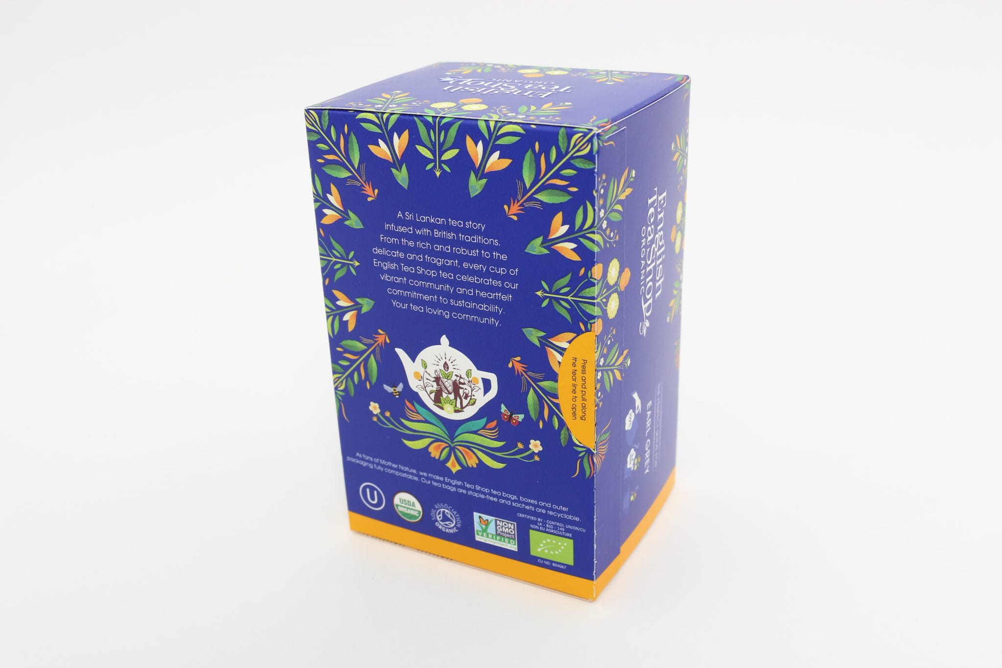 Ekologiczna herbata czarna z bergamotką. Składniki: Ekologiczna czarna herbata cejlońska z certyfikatem Fairtrade (95%), olej z bergamotki ekologicznej (5%).
