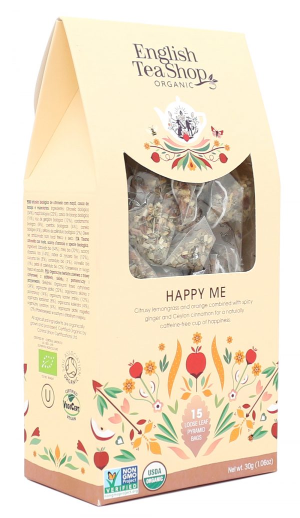 Ekologiczna herbatka ziołowa z trawy cytrynowej z jabłkiem, skórką pomarańczy i przyprawami. Składniki: Ekologiczna trawa cytrynowa (34%), ekologiczne jabłko (22%), ekologiczna skórka z pomarańczy (14%), ekologiczny korzeń imbiru (12%), ekologiczny kardamon (8%), ekologiczna kolendra (4%), ekologiczny cynamon (4%), ekologiczne płatki nagietka (2%).