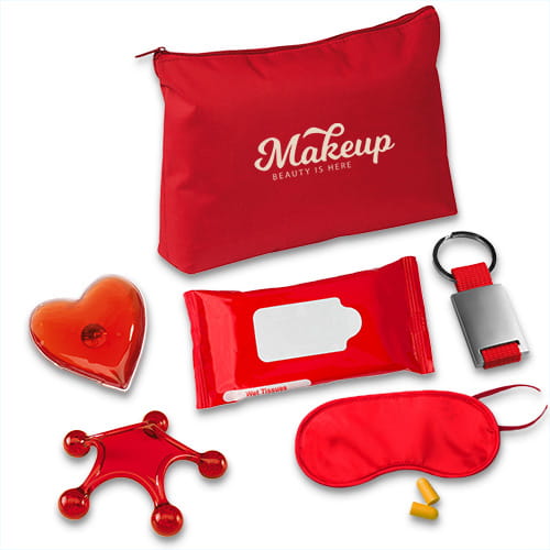 Wybierając nasz czerwony pakiet kosmetyczny, oferujesz zestaw upominków reklamowych, który łączy elegancję z praktycznymi akcesoriami, przynosząc relaks i komfort w każdej chwili. Doskonały na upominek, który łączy estetykę z funkcjonalnością, zapewniając chwilę odprężenia i luksusu na co dzień.
