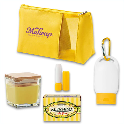Żółty pakiet kosmetyczny to doskonały sposób na wprowadzenie odrobiny optymizmu i świeżości do codziennej rutyny. Jako prezent firmowy lub osobisty upominek, zestaw ten łączy elegancję z radosnym akcentem, zapewniając nie tylko funkcjonalność, ale i przyjemność z użytkowania. Aby nadać pakietowi jeszcze bardziej osobisty charakter, oferujemy opcję personalizacji każdego elementu. Dodanie logo, imienia lub innego unikalnego detalu sprawia, że prezent staje się wyjątkowy.
