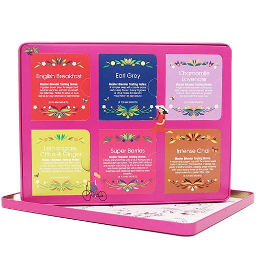 „The Ultimate Tea Collection” to doskonały wybór dla miłośników herbaty, którzy cenią sobie elegancję i ekologiczną odpowiedzialność. Zestaw jest zapakowany w elegancką metalową puszkę, wolną od plastiku i nadającą się do recyklingu, z wnętrzem wykonanym z papieru. Taki sposób pakowania odzwierciedla troskę o środowisko oraz wysoką estetykę.