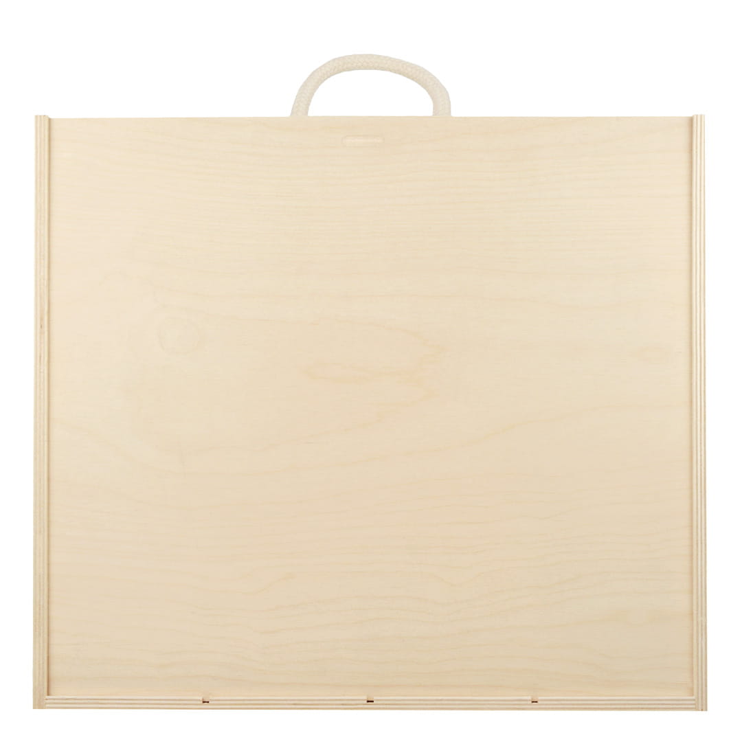 pudełko drewniane czterokomorowe, wymiary 35 cm x 30 cm x 11 cm, zamknięcie wsuwane