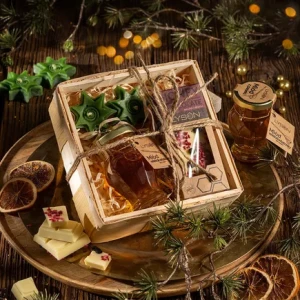 Subtelny, a zarazem wyjątkowy zestaw prezentowy, który łączy naturalne smaki z eleganckimi, świątecznymi akcentami. Idealny jako upominek biznesowy.