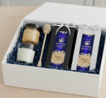 Zestaw pakowany w pudełko prezentowe fasonowe w kolorze białym