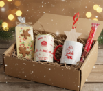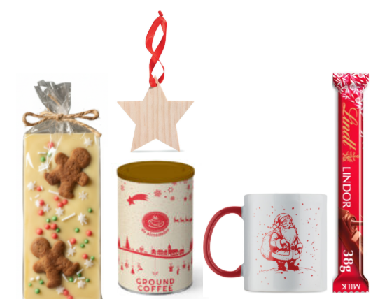 Zestaw zapakowany w pudełko świąteczne fasonowe z okienkiem 300x300x100 mm