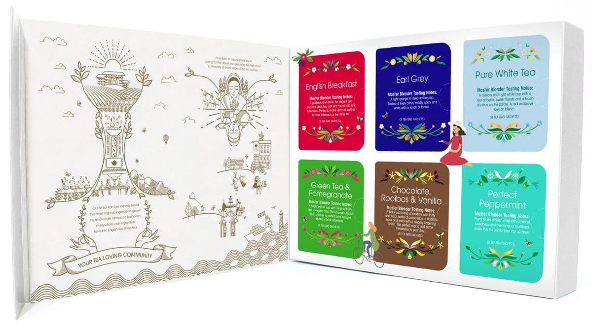 Smaki herbaty: English Breakfast, Earl Grey, Pure White Tea, Green Tea & Pomegranate, Chocolate, Rooibos & Vanilla, Perfect Peppremint.