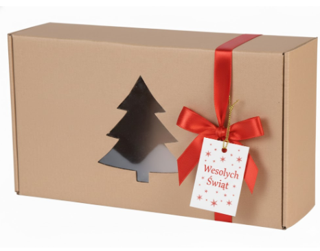 Zestaw pakowany w pudełko fasonowe z okienkiem w kształcie choinki