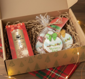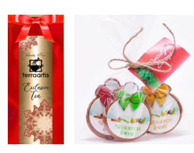 Zestaw pakowany w pudełko kartonowe z nadrukiem choinke
